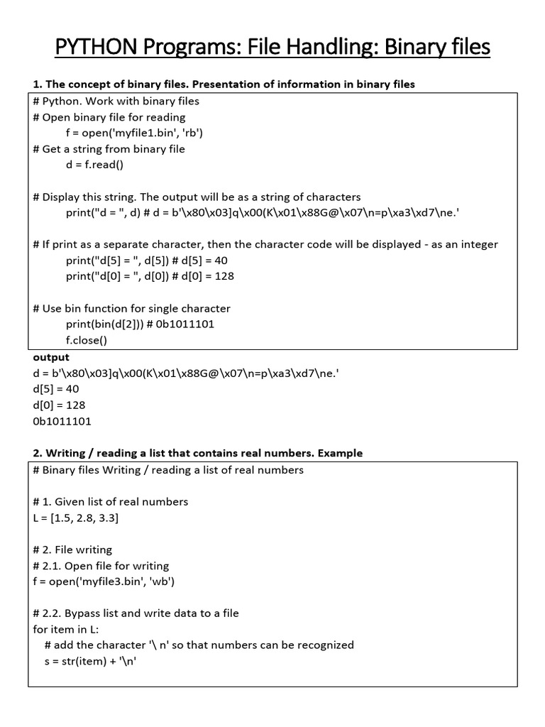 Class 12 - How to handle Binary File in Python - Easy Handout - CS-IP ...