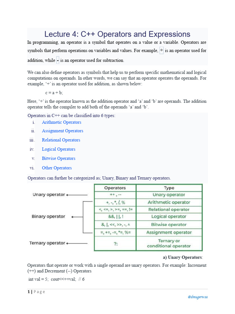 C++ Operators and Expressions | PDF | Pointer (Computer Programming ...