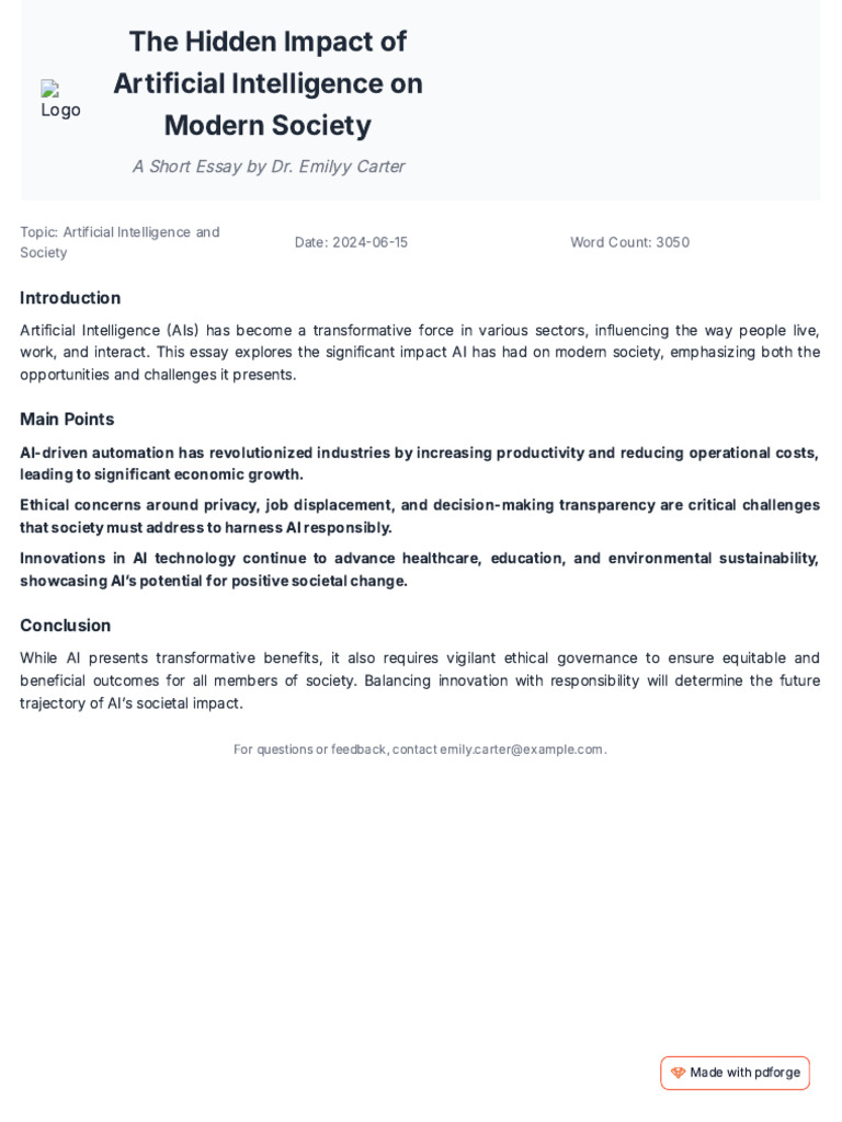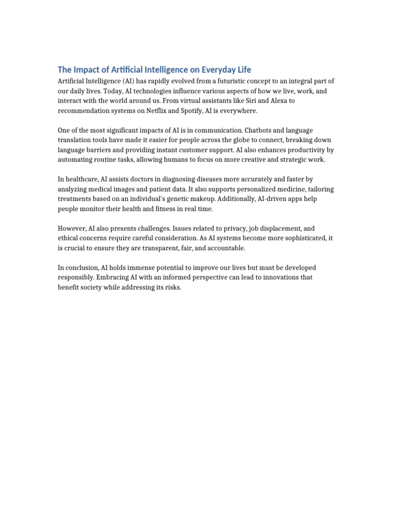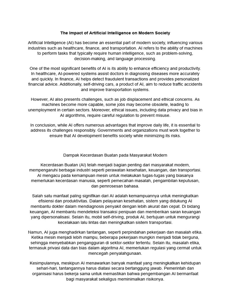 The Impact of Artificial Intelligence on Modern Society | PDF ...