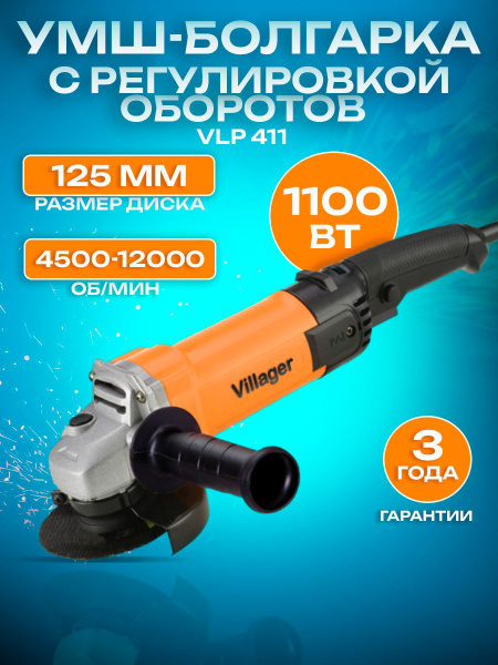 Угловая шлифовальная машина с регулировкой оборотов Villager VLP411 ...