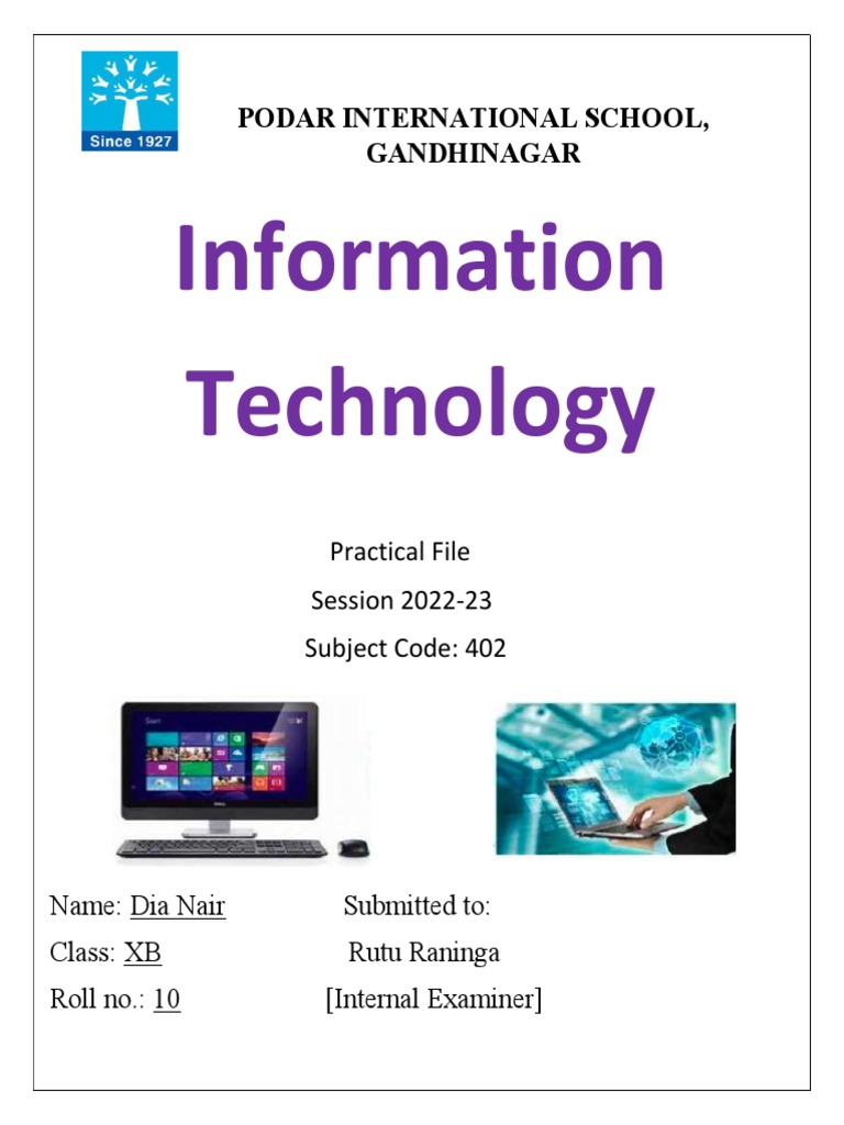 Information Technology 402 Class 10 Practical File 2021 | PDF