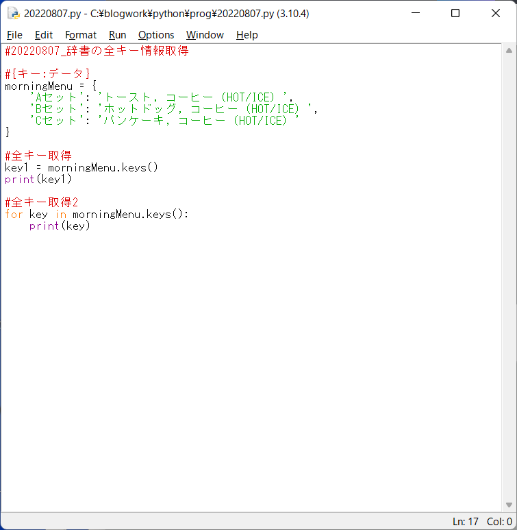 126.辞書の全キー情報取得 : Pythonの学習記録