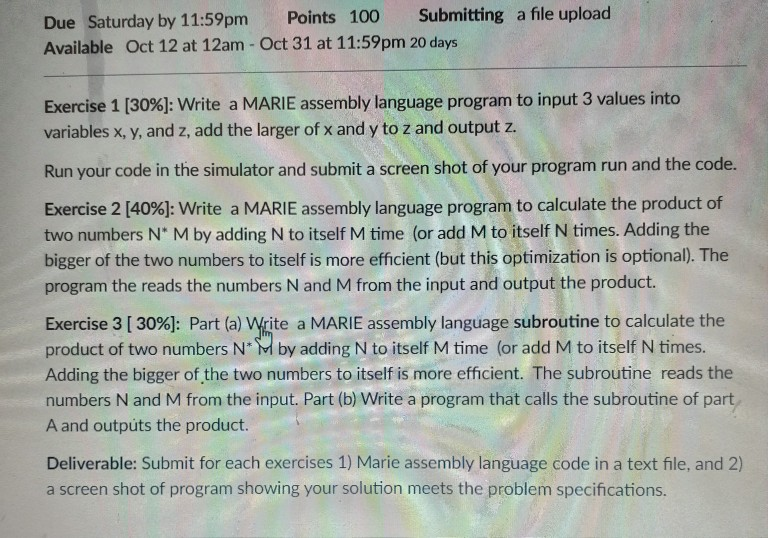 Due Sunday by 11:59pm Points 20 Submitting a file | Chegg.com