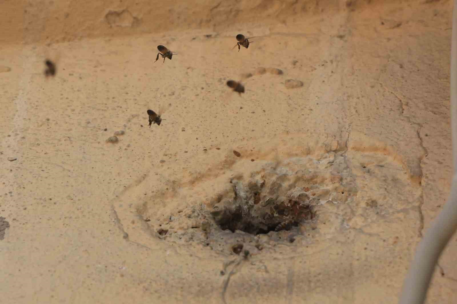 Yıllardır mahalleyi mesken tutan arıları çocukların attığı taş kızdırdı