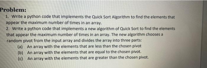 Based on this image's title: “Solved Write a Python function to implement the quick sort | Chegg.com”