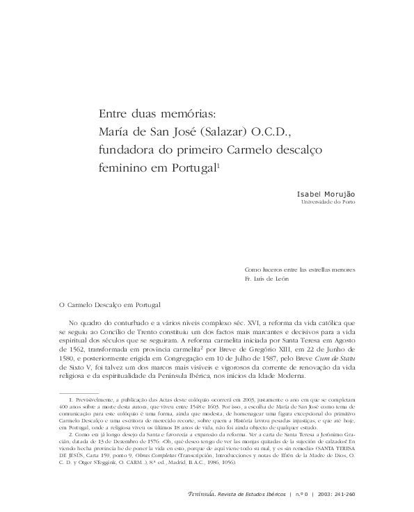 (PDF) Entre duas memórias : María de San José (Salazar) O.C.D ...