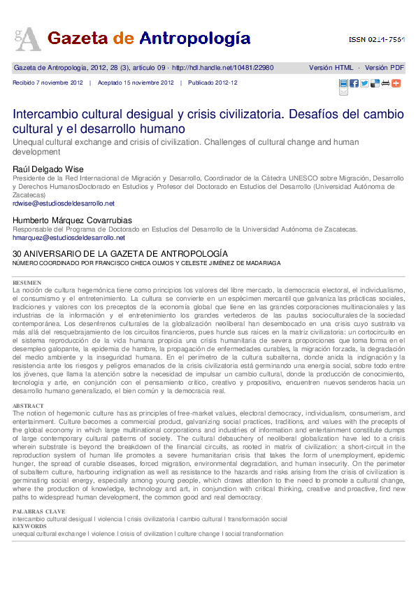 (PDF) Intercambio cultural desigual y crisis civilizatoria. Desafíos ...