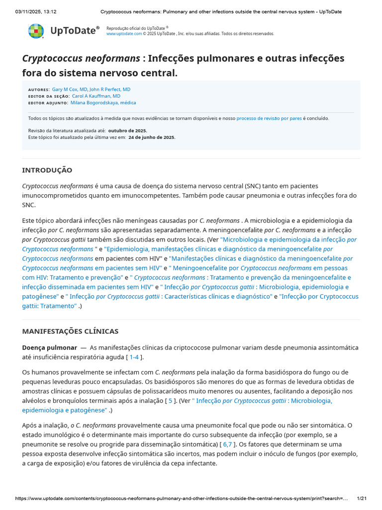 Cryptococcus Neoformans - Pulmonary and Other Infections Outside The ...