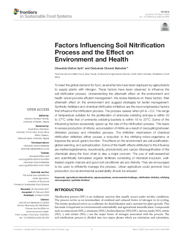 (PDF) Factors Influencing Soil Nitrification Process and the Effect on ...