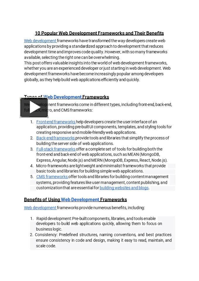 PPT – 10 Popular Web Development Frameworks and Their Benefits ...