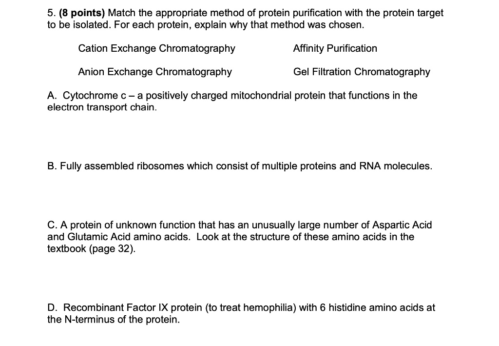 SOLVED: 5. (8 points) Match the appropriate method of protein ...