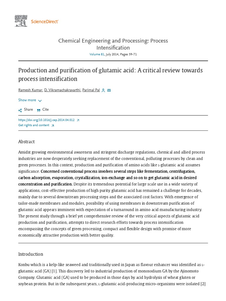 Production and Purification of Glutamic Acid - A Critical Review ...