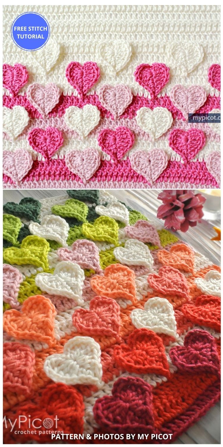 Learn to crochet hearts stitch – Artofit