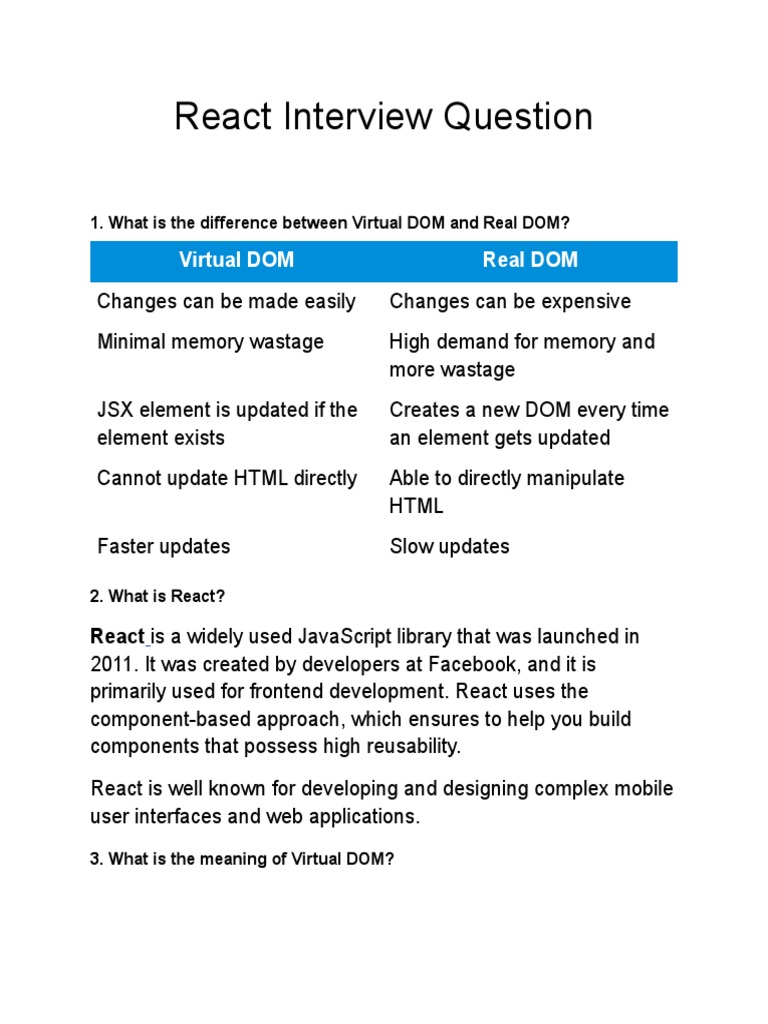React Interview Question - React Interview Questions with Answer Hassan ...
