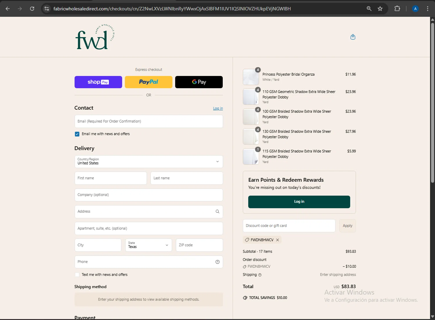 Fabric Wholesale Direct Promo Code - $10 Off Jan 2026
