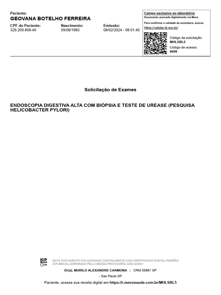 Solicitação de Endoscopia Digestiva Alta | PDF