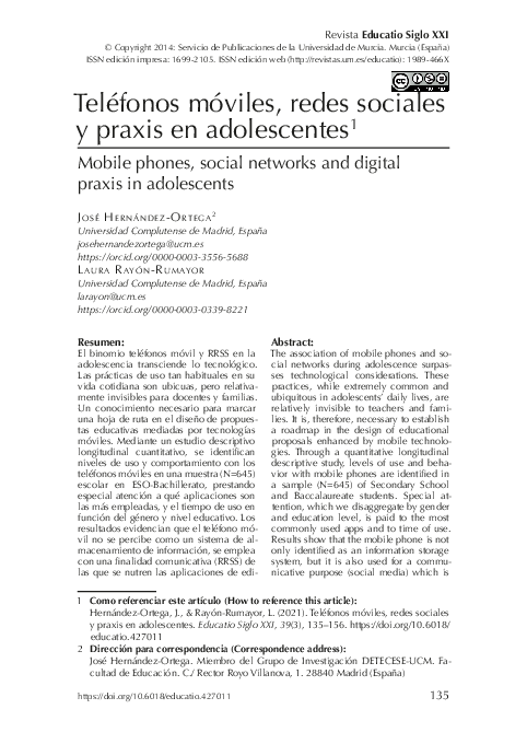 (PDF) Teléfonos móviles, redes sociales y praxis en adolescentes