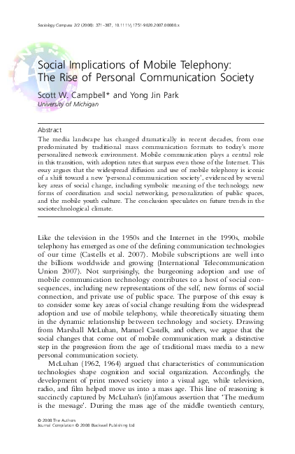 (PDF) Social Implications of Mobile Telephony: The Rise of Personal ...