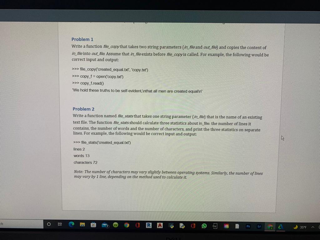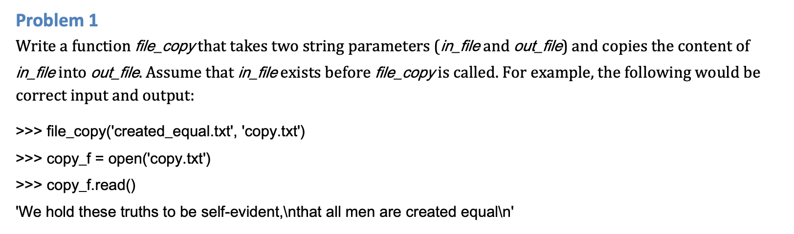 Solved Problem 1 Write a function file_copy that takes two | Chegg.com