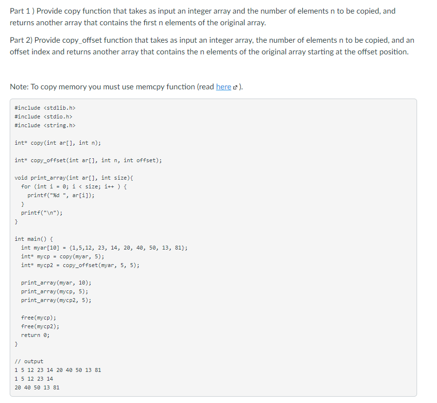Solved Part 1) Provide copy function that takes as input an | Chegg.com