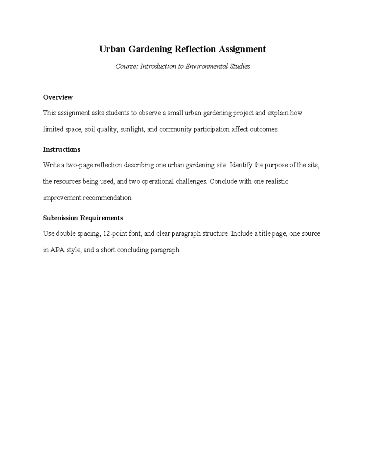 Random assignment 1 - fluid mec - Urban Gardening Reflection Assignment ...