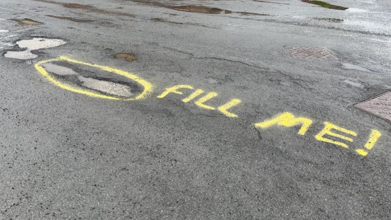 York graffiti highlights city's potholes problem - BBC News