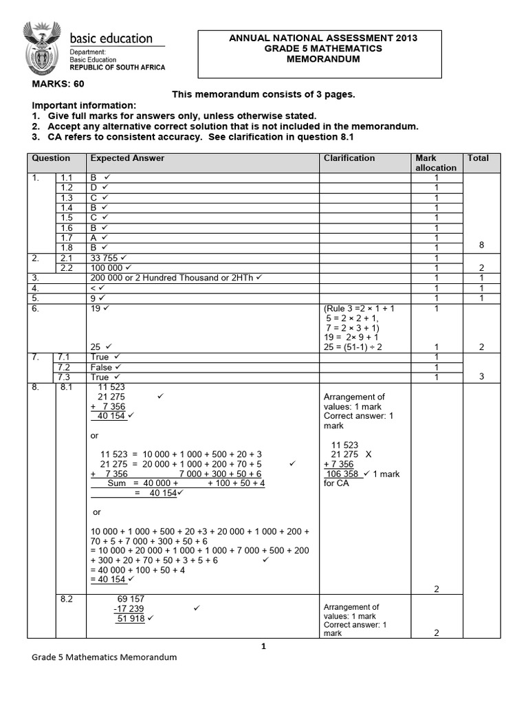 2013 + Grade+5+ Mathematics+ Exemplar+ Questions+MEMO+2013 +ANA ...