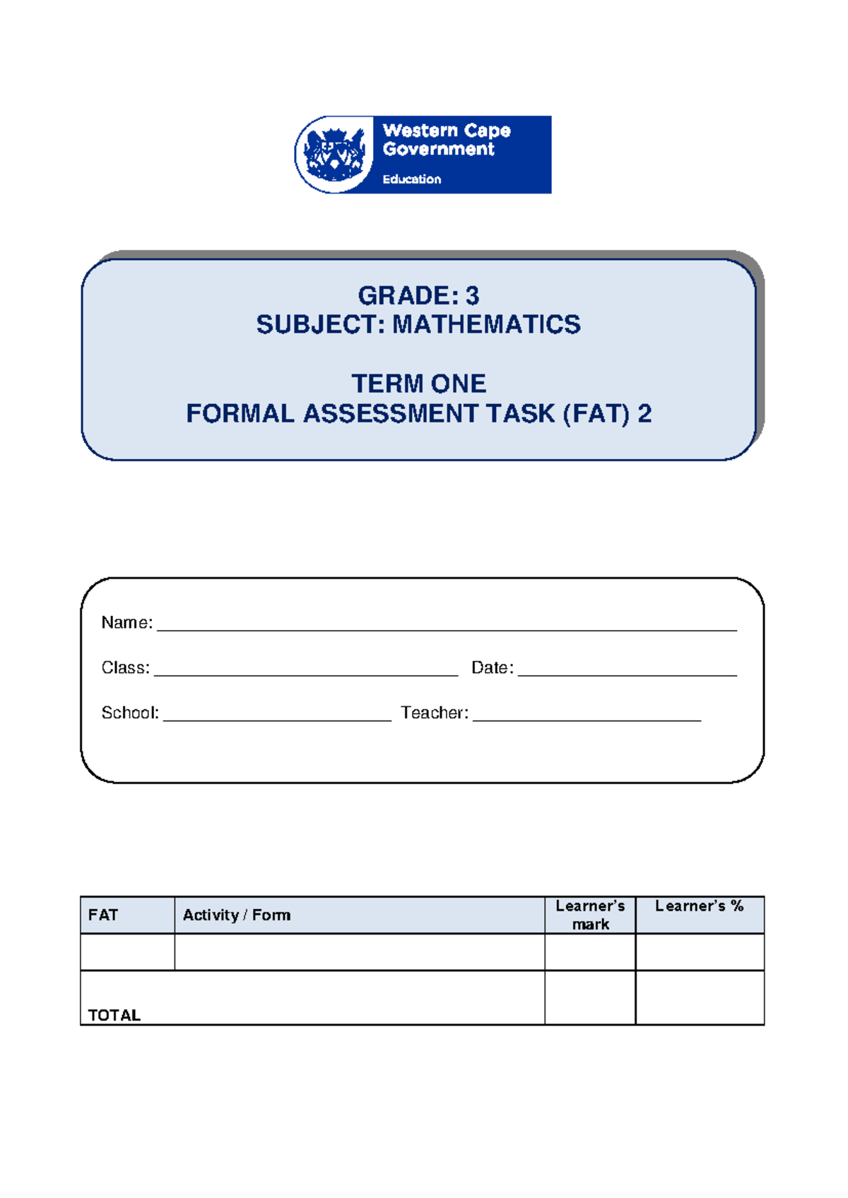 Grade 5 Mathematics FAT 1 2 Test - Term Two Assessment Tasks - Studocu