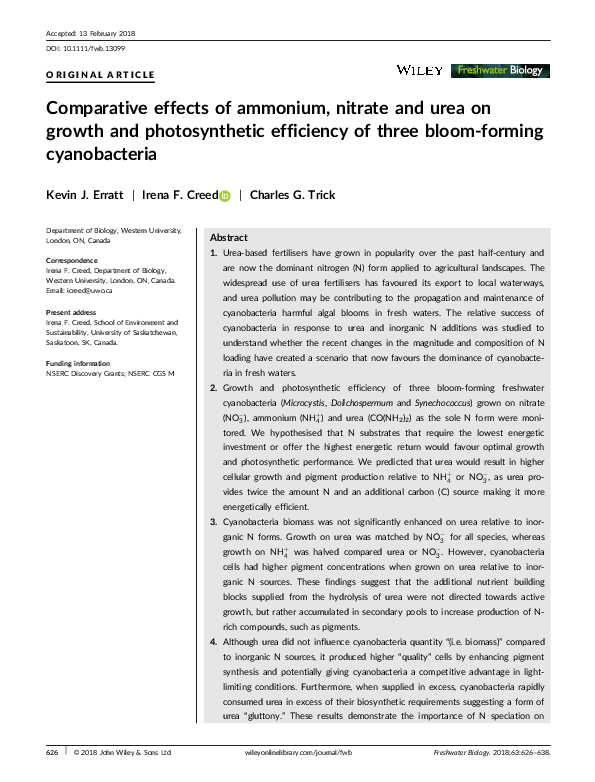 (PDF) Comparative effects of ammonium, nitrate and urea on growth and ...
