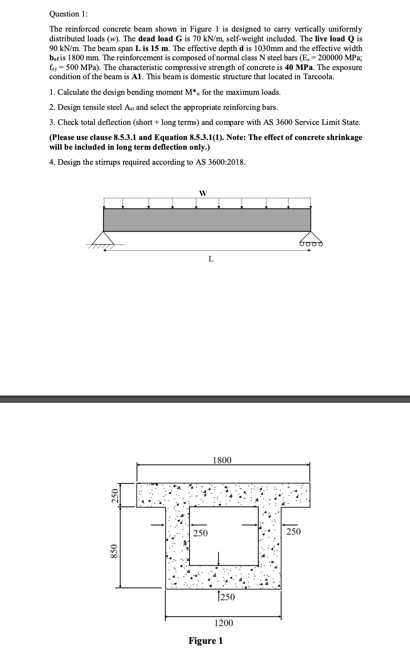 Solved Question 1: The reinforced concrete beam shown in | Chegg.com