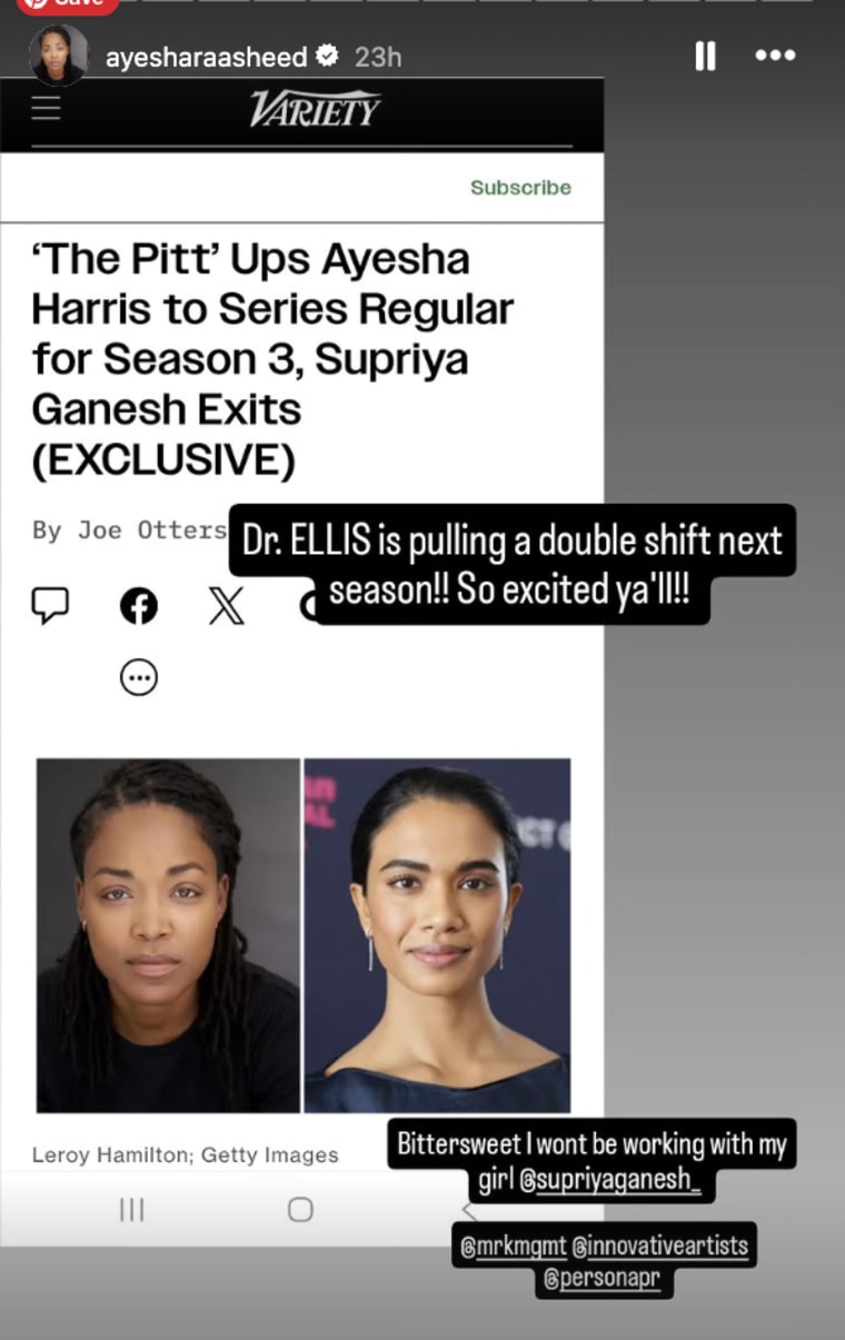 'The Pitt': Supriya Ganesh Exits for Season 3, Ayesha Harris Promoted