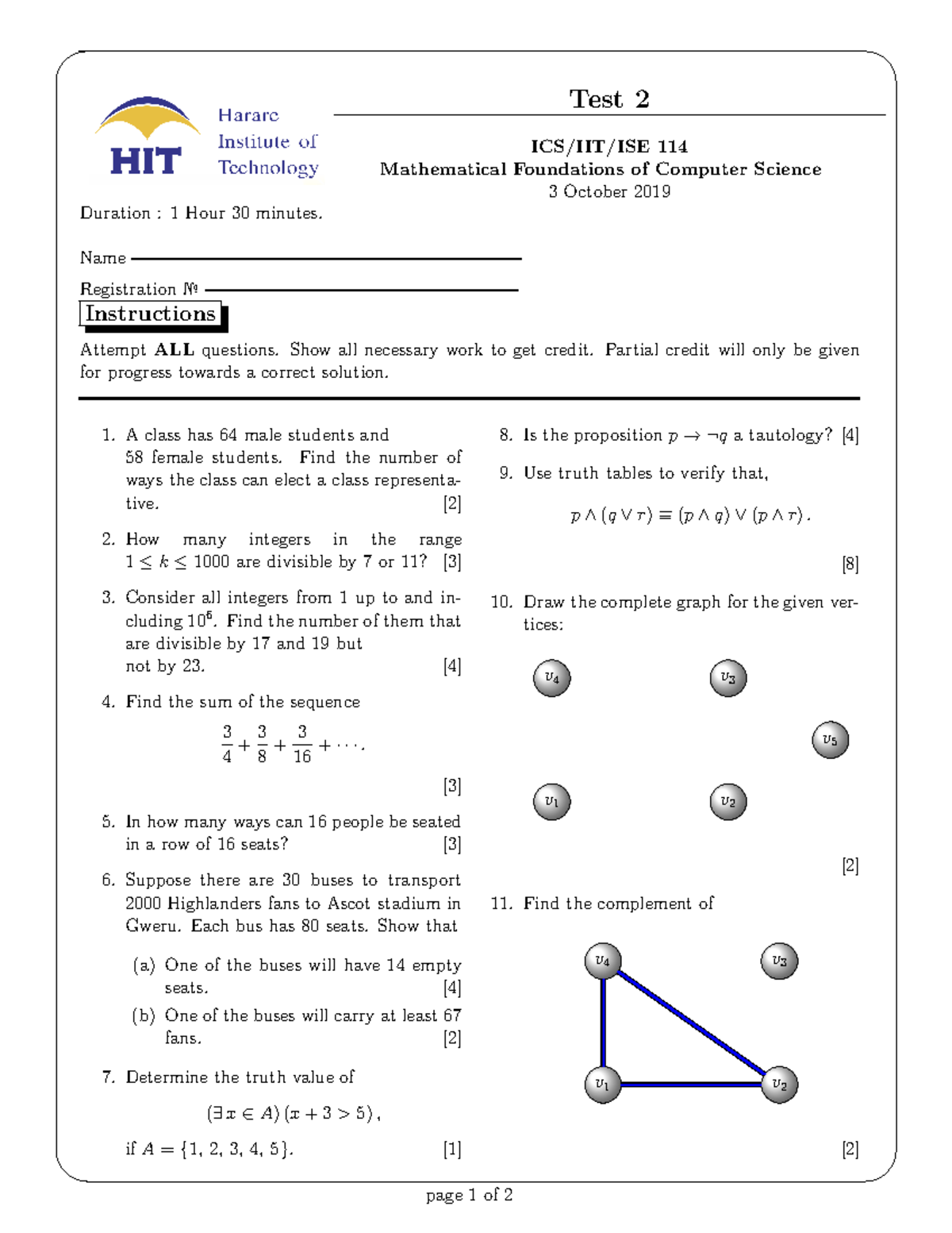 2019 test 2 - test 2 - ' & $ % Test 2 ICS/IIT/ISE 114 Mathematical ...