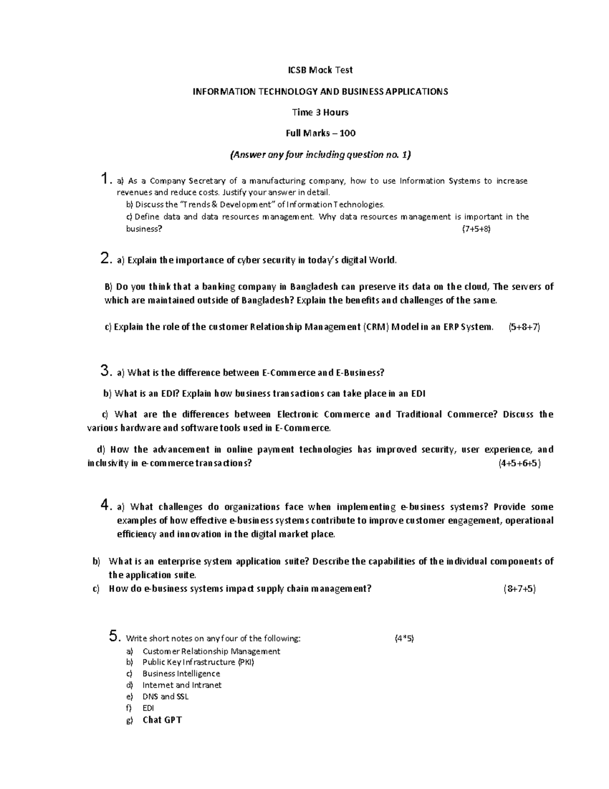 Moc Test Final Question with Answer. pdf - ICSB Mock Test INFORMATION ...