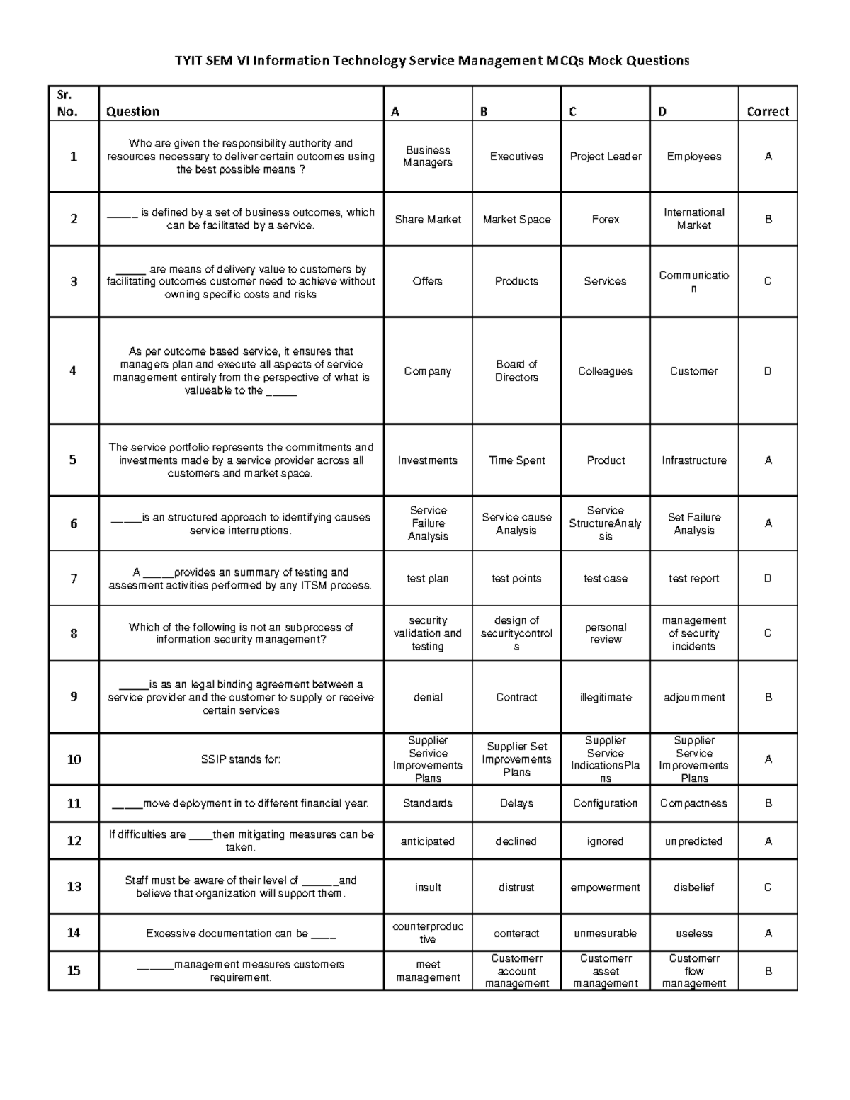 Tybscit SEM VI ITSM Mock - TYIT SEM VI Information Technology Service ...