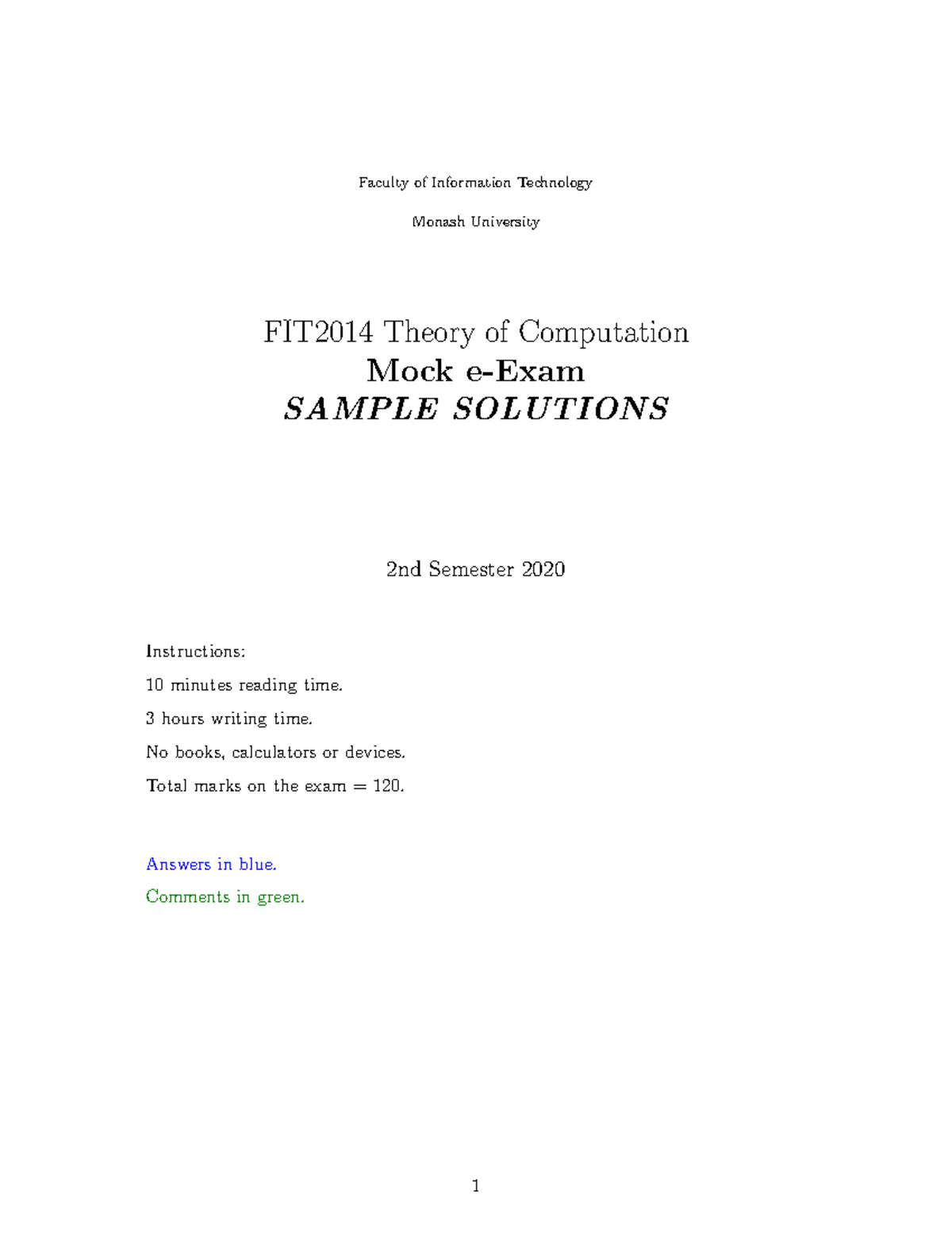2020 Mock Exam solution - Faculty of Information Technology Monash ...