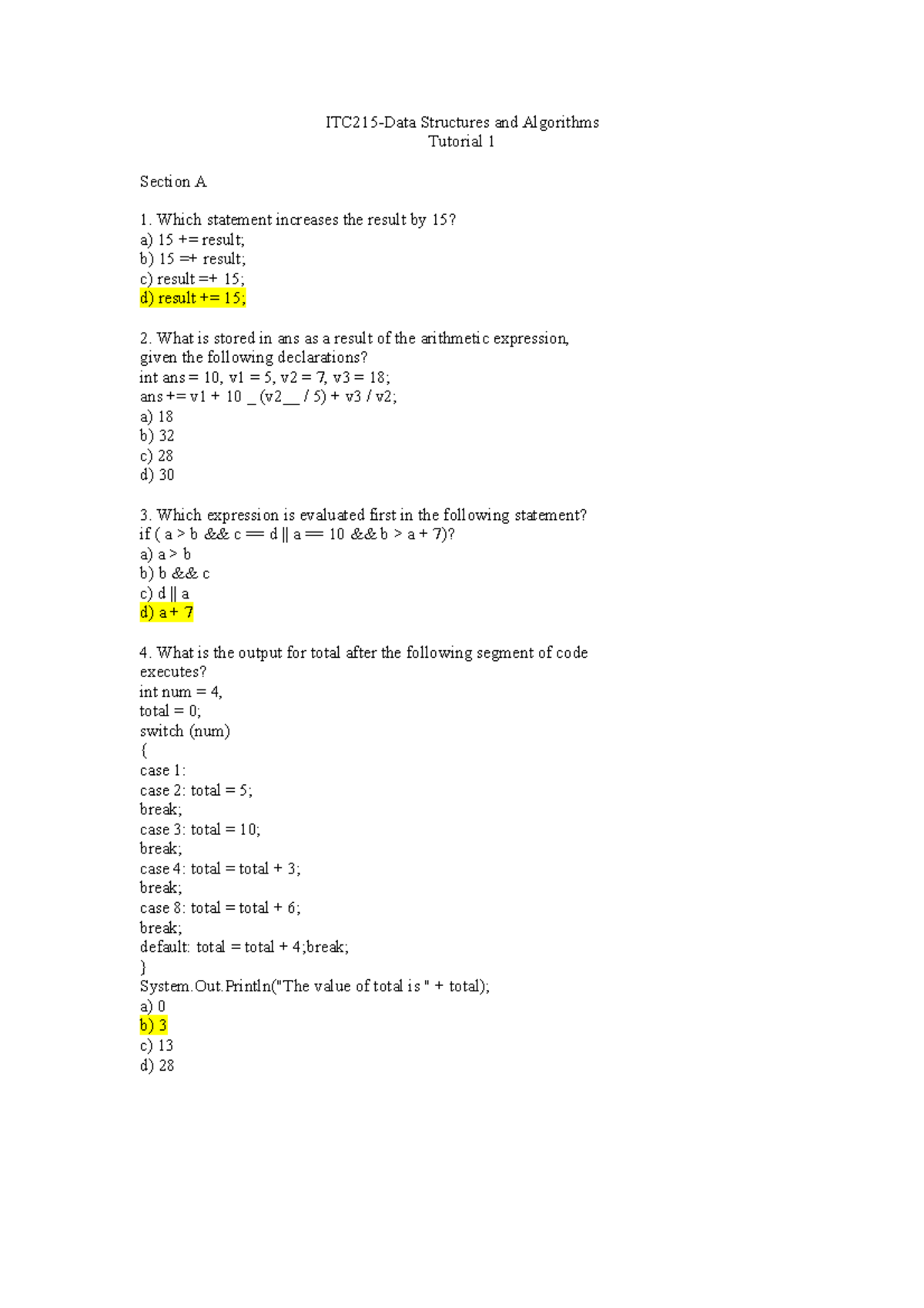 ITC215‐Data Structures and Algorithms - ITC215 Data Structures and ...