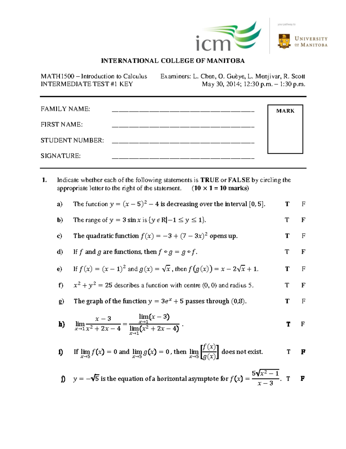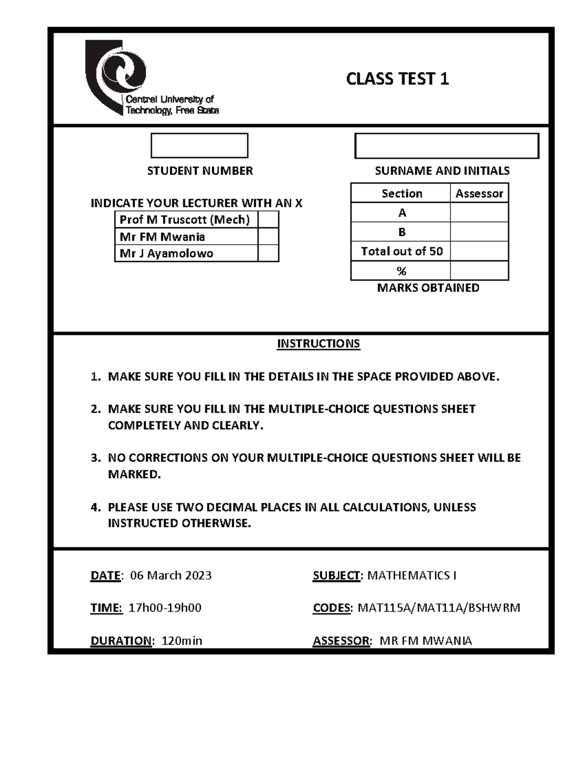 2023 MAT115A Test 1 Paper - Student Assessment and Instructions - Studocu