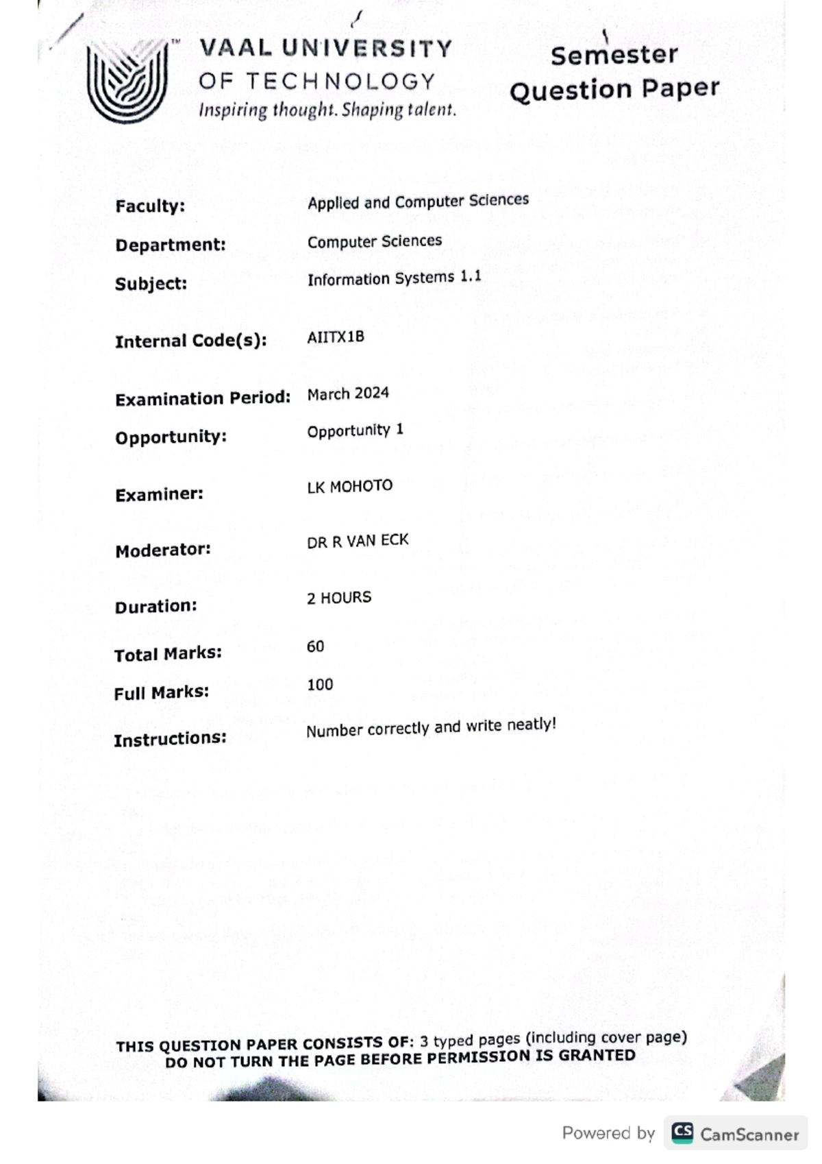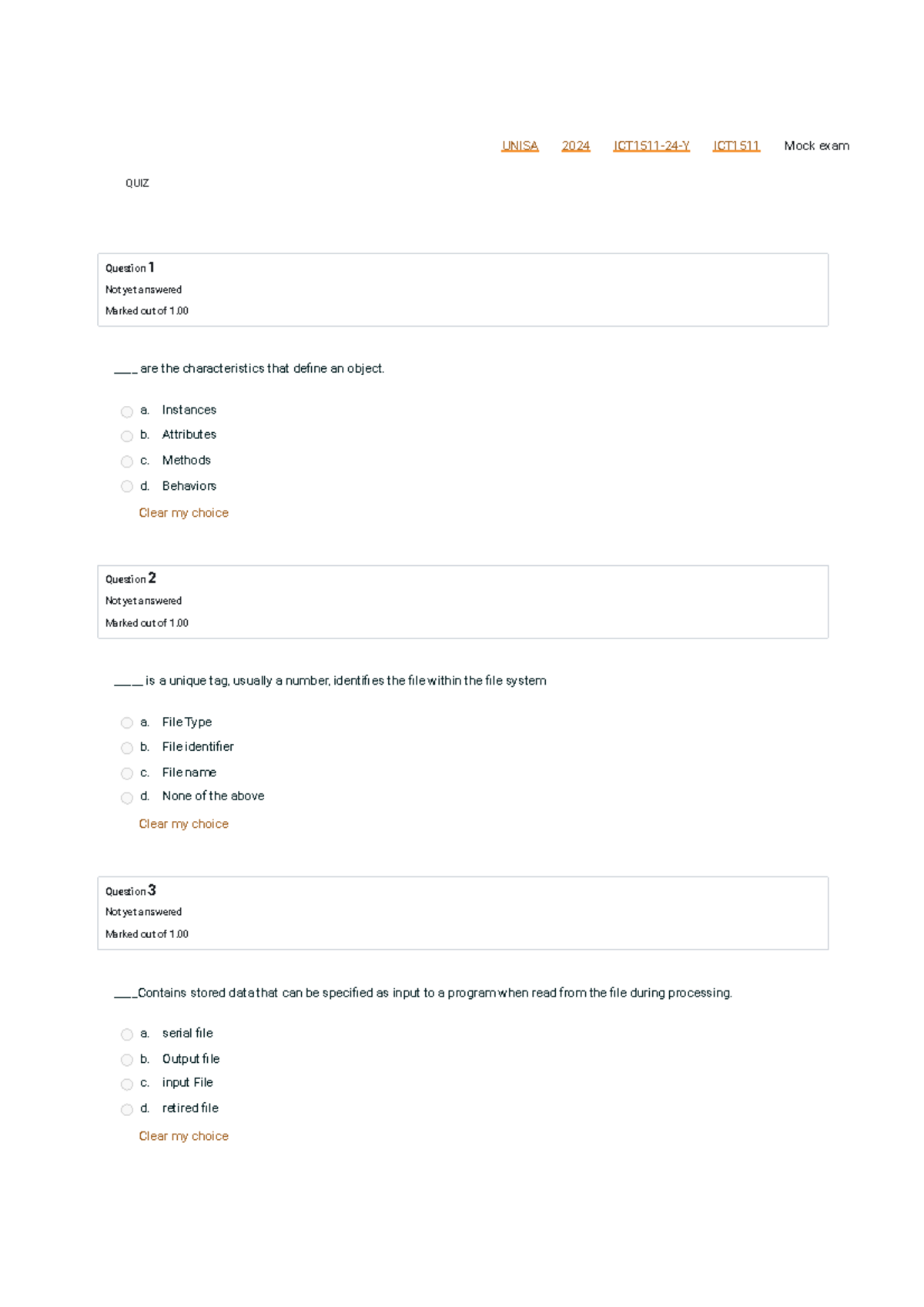 Mock exam (page 1 of 10) - Practice exam - UNISA 2024 ICT1511-24-Y ...
