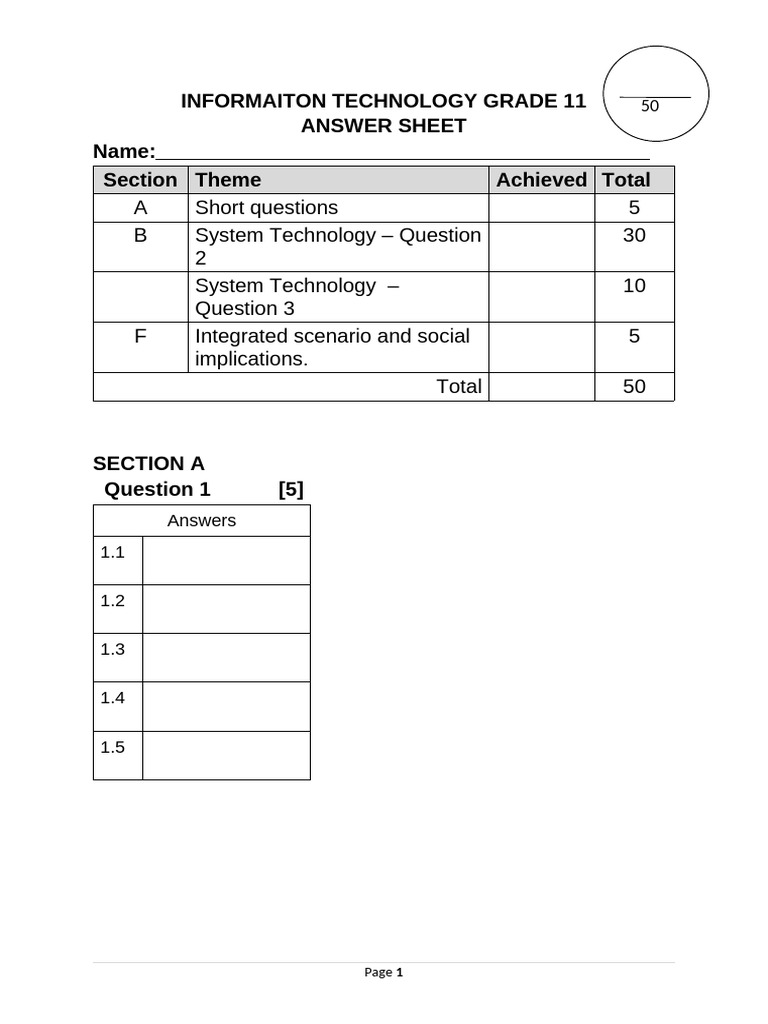 Grade 11 IT Term 1 Test Paper | PDF | Random Access Memory | Graphics ...