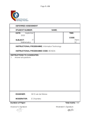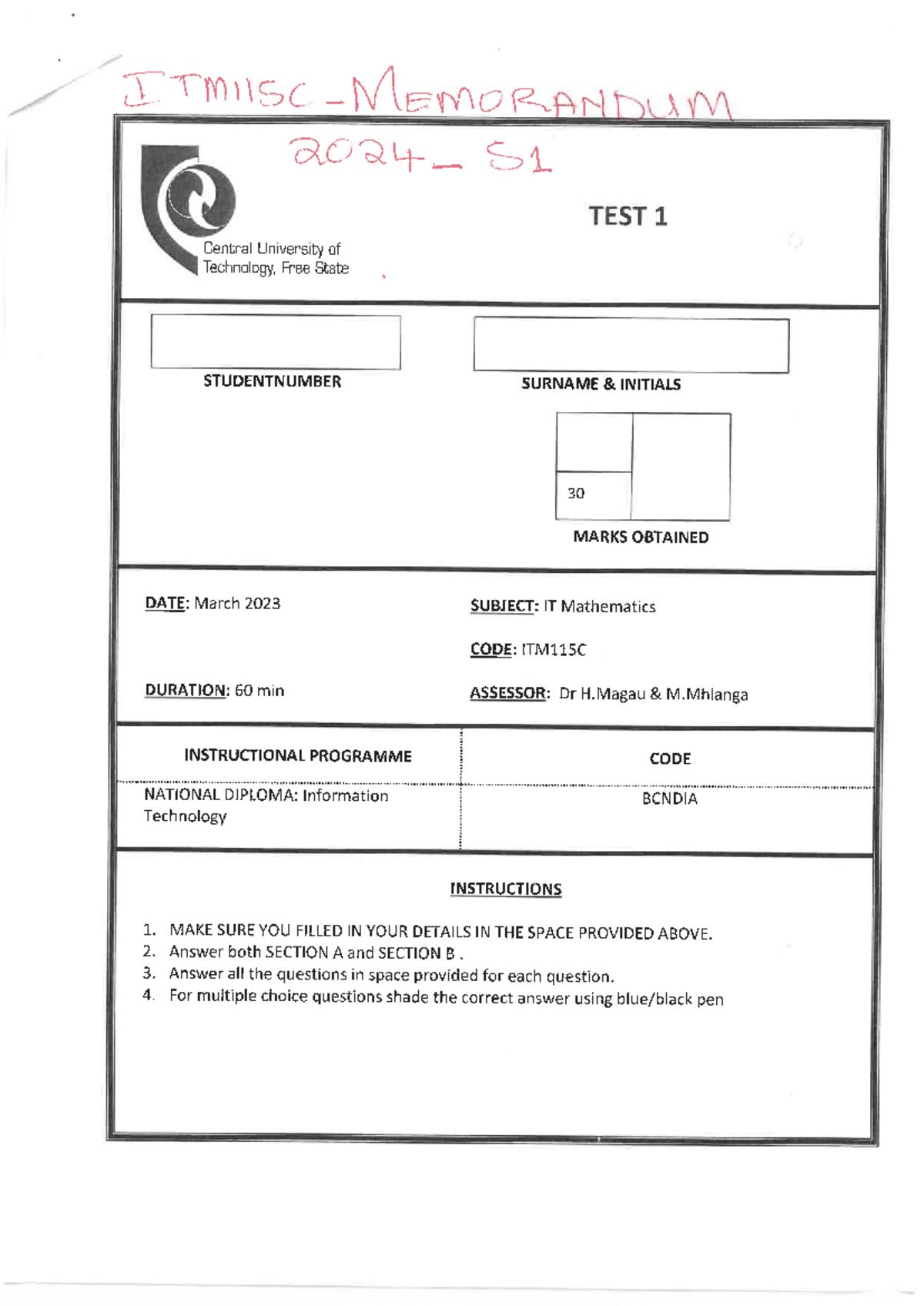 ITM115C Memorandum Test 1 - IT Mathematics (March 2023) - Studocu