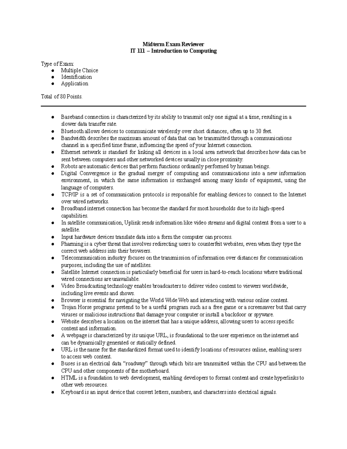 IT 111 Midterm Exam Reviewer: Key Concepts in Computing - Studocu