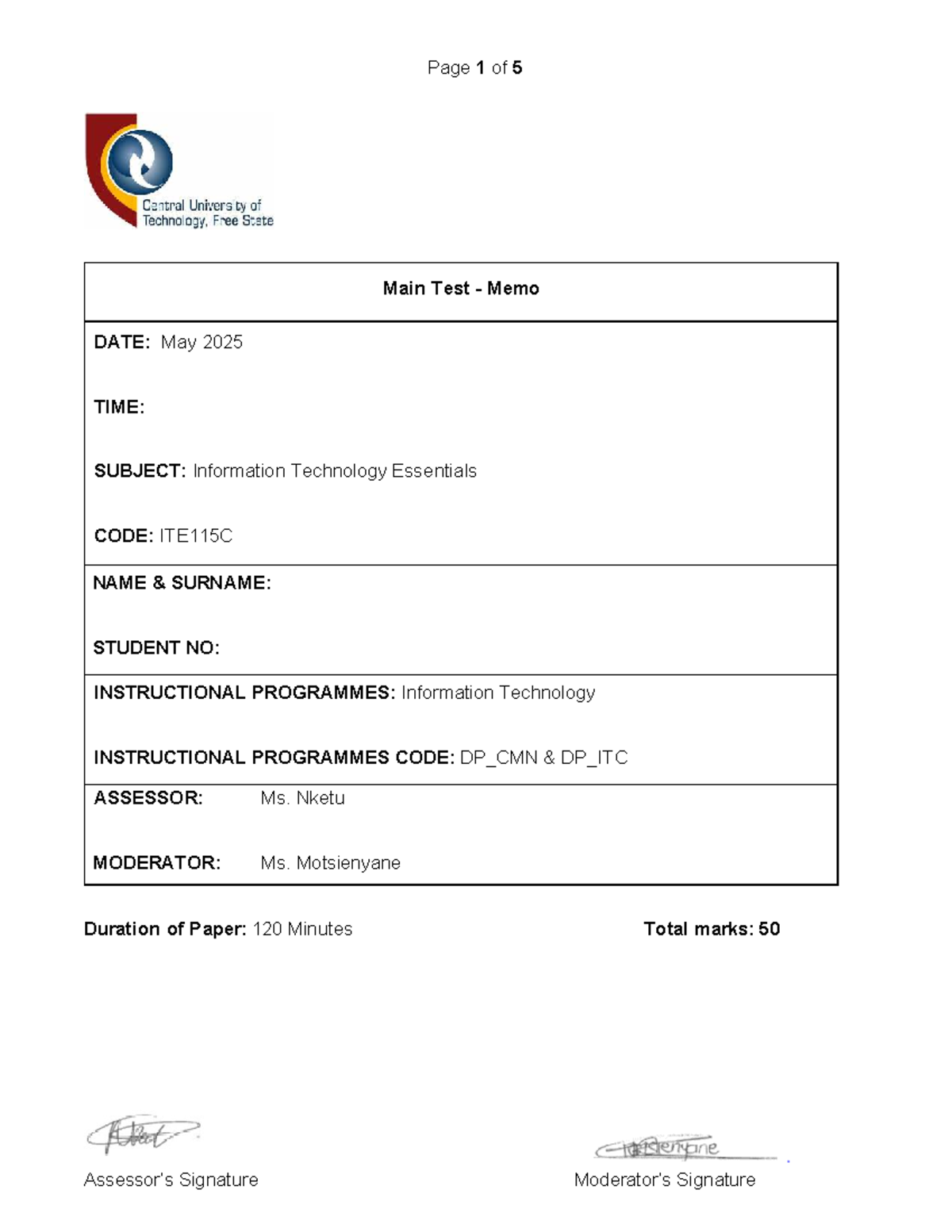 ITE115C Information Technology Essentials Test Memo 2025 - Studocu