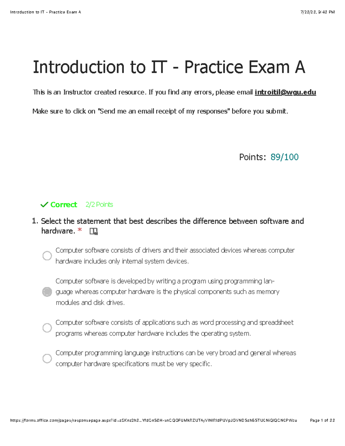 Introduction to IT - Practice Exam A - Key Concepts and Questions - Studocu