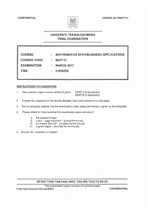Business in Mathematics - MAT112 - UiTM - Studocu