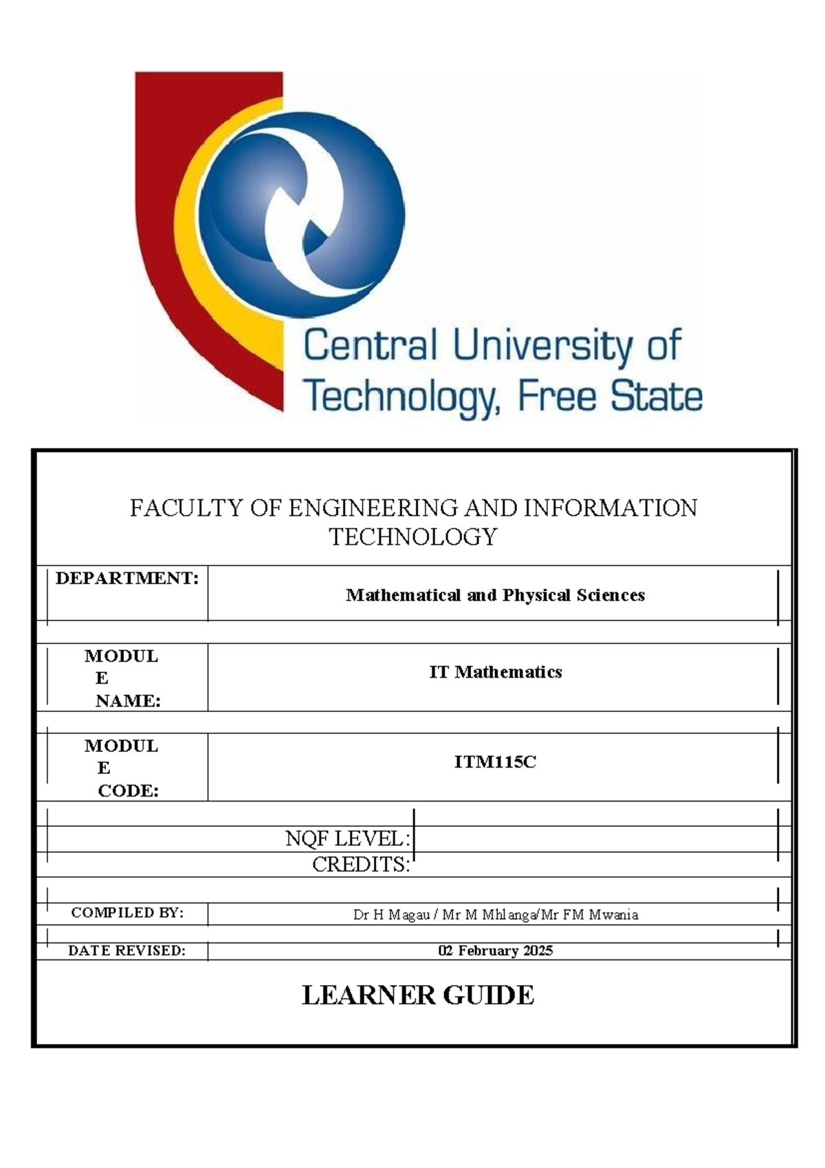ITM115C Final Learner's Guide for IT Mathematics Module 2025 - Studocu