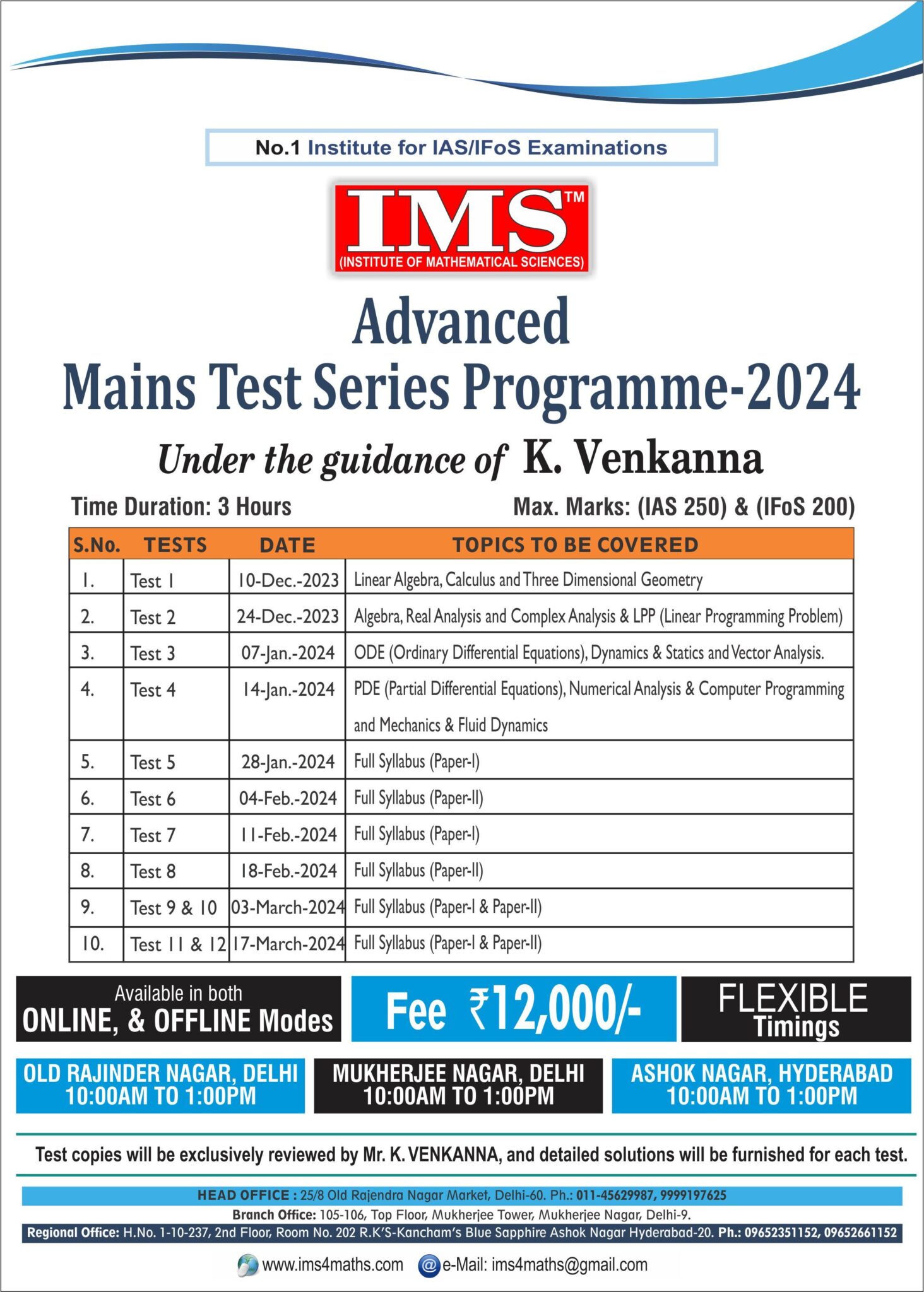 UPSC Mathematics Optional Mains Test Series - IMS4Maths by K. Venkanna Sir