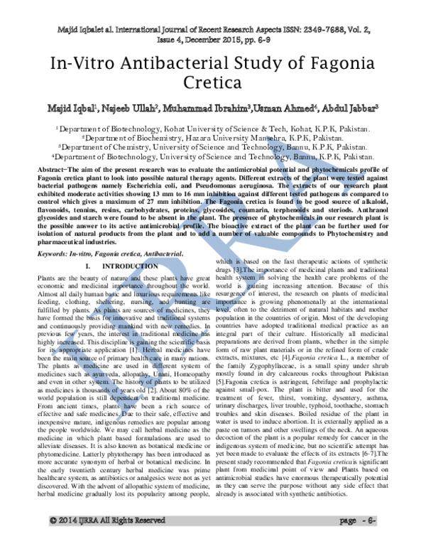 (PDF) In-Vitro Antibacterial Study of Fagonia Cretica