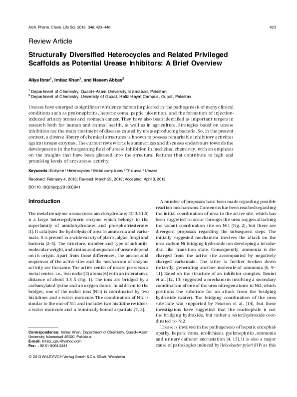 (PDF) A Review on the Urease Inhibition Potential of Various Compounds