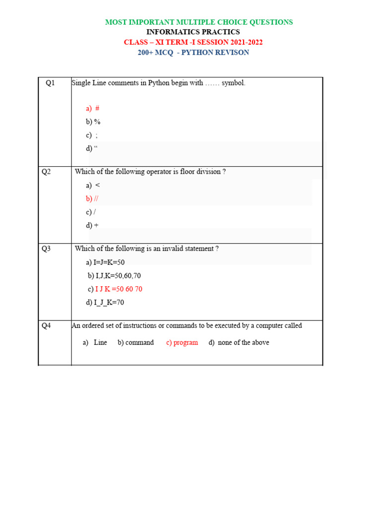Python and ML MCQ - Python MCQ (Multi Choice Questions) Q. What is the ...