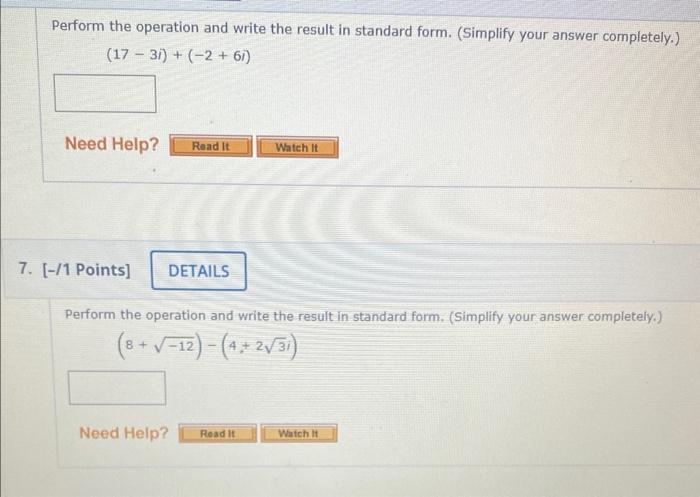 ⏩SOLVED:Performing Operations with Complex Numbers. Perform the… | Numerade